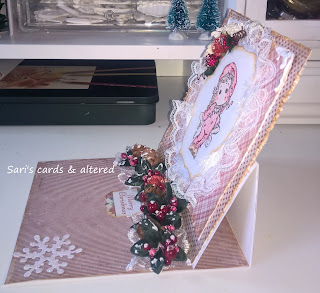On the "lid" i have used a little green and some berrys that i have covered with "snow" (snow paste) and a little tag and a gift.